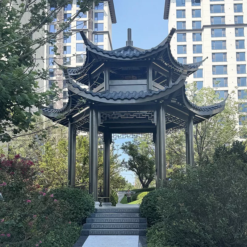 Uus Hiina traditsioonilise arhitektuuripaviljon: integreerib kaasaegsed materjalid, lihtsustab mõningaid protsesse ja loob minimalistliku ja elegantse kaasaegse iidse stiili, mis sobib erinevatesse kaasaegsetesse Hiina oludesse.
